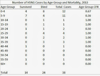 In 2013, the age of H5N1 cases ranged from less than one year old to 58 years old with a median age of 6. Children under 10 years old were the most commonly infected individuals. Twenty-four (63%) of the 38 cases were less than 10 years old in age.