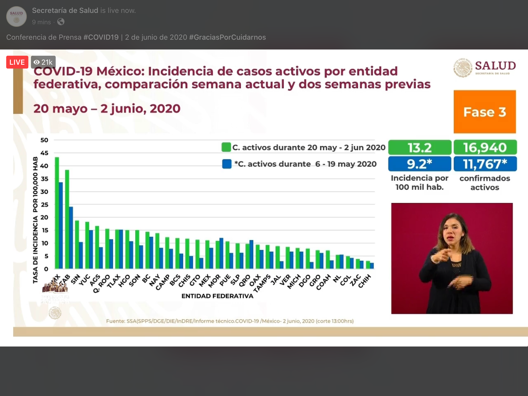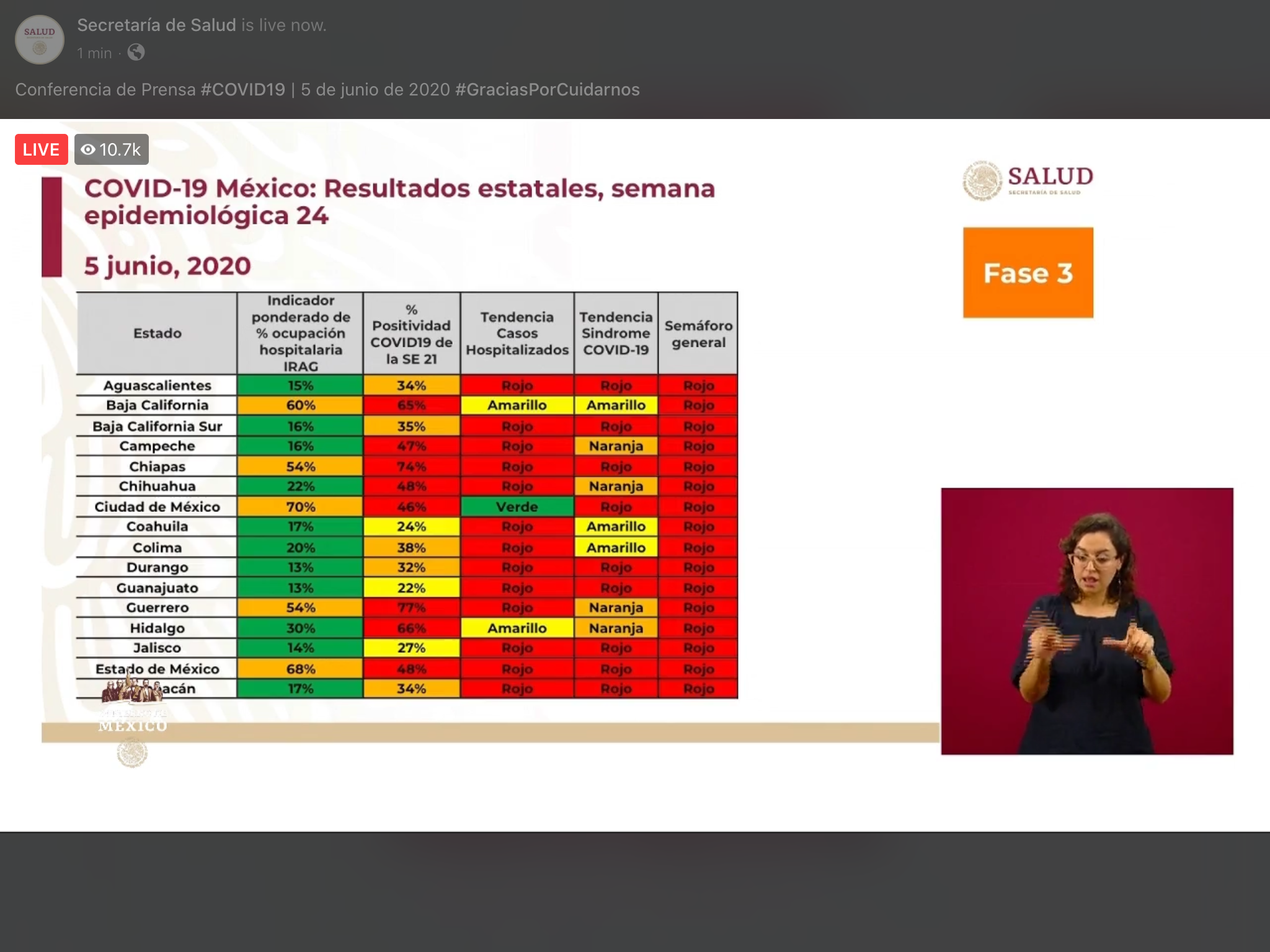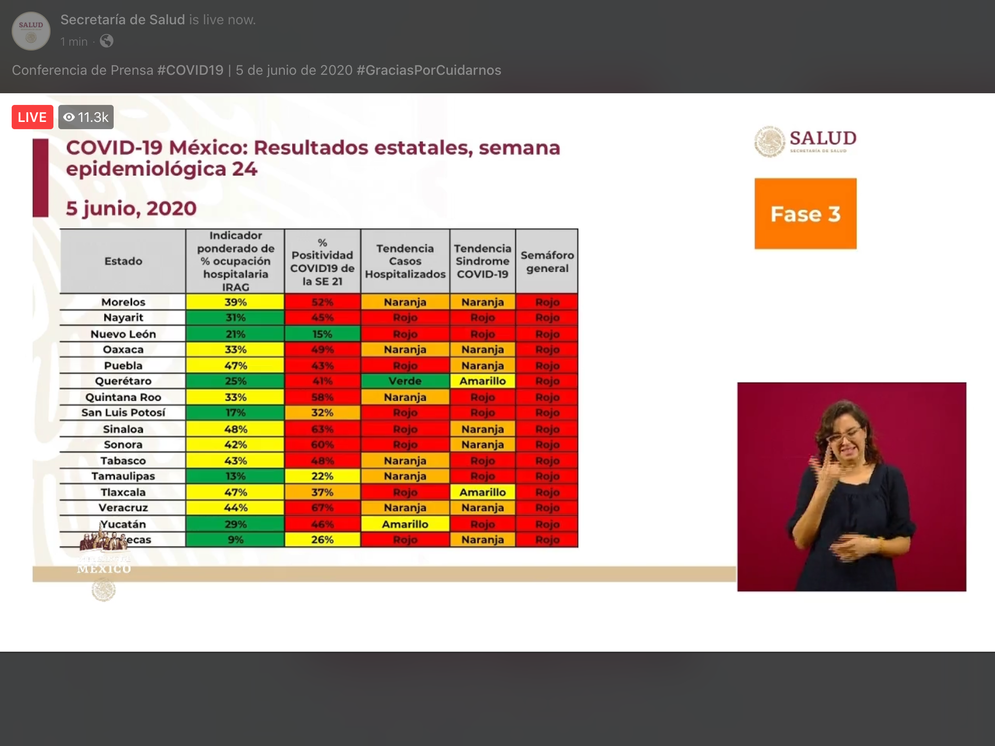 Saturday, May 30, 2020. Mexico reports 87512 cases and 9779 deaths