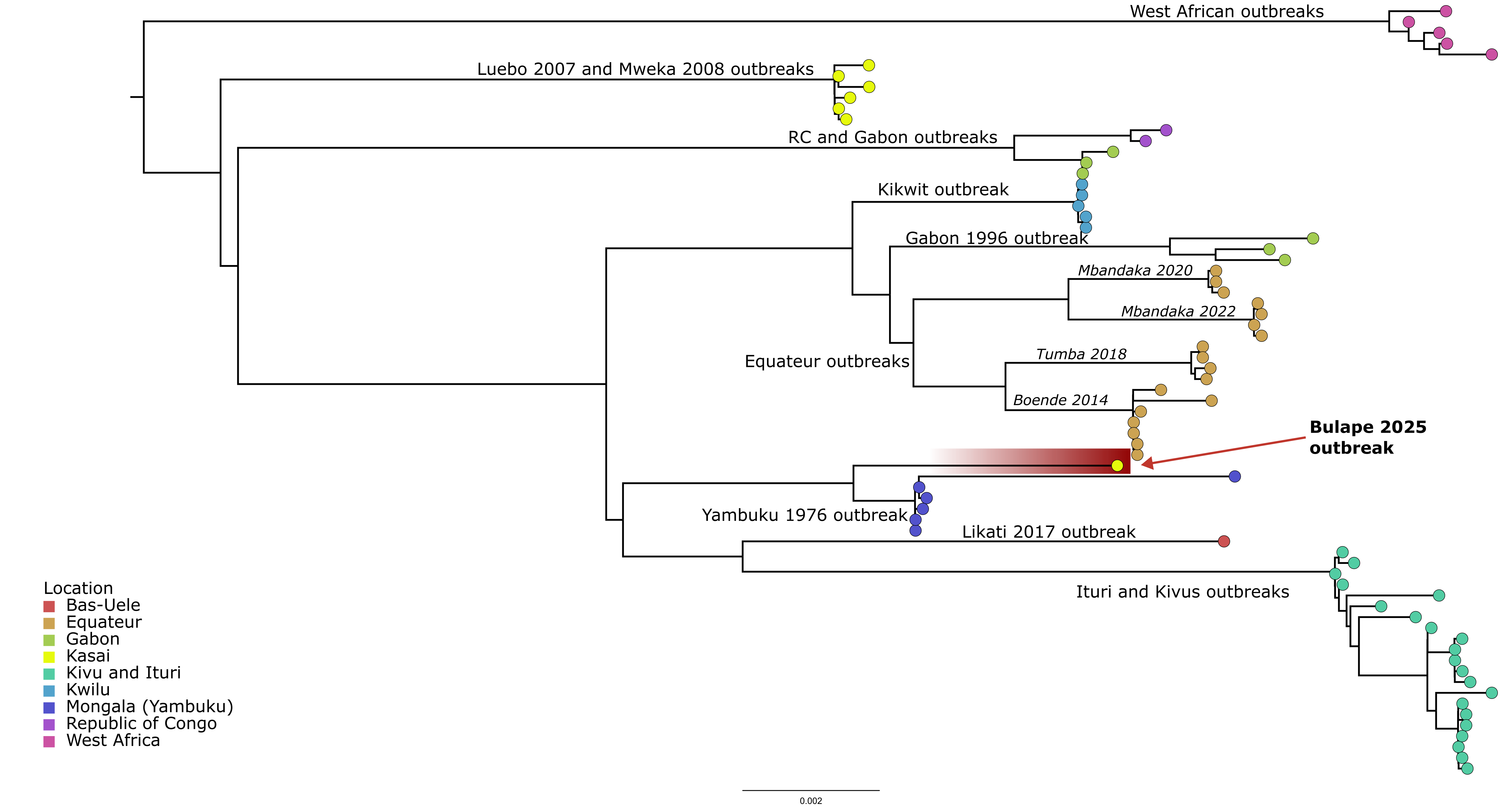 The index case is a 34-year-old pregnant woman, admitted to HGR Bulape on August 20 with suggestive symptoms (sudden fever, multiple hemorrhages, bloody vomiting, marked asthenia). She died on August 25, 2025, in a picture of multiorgan failure.