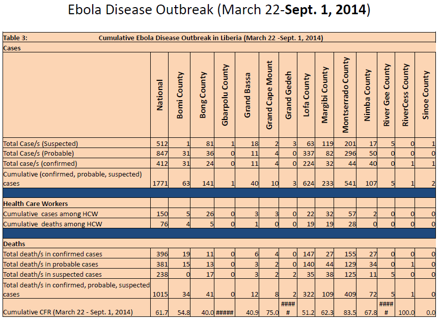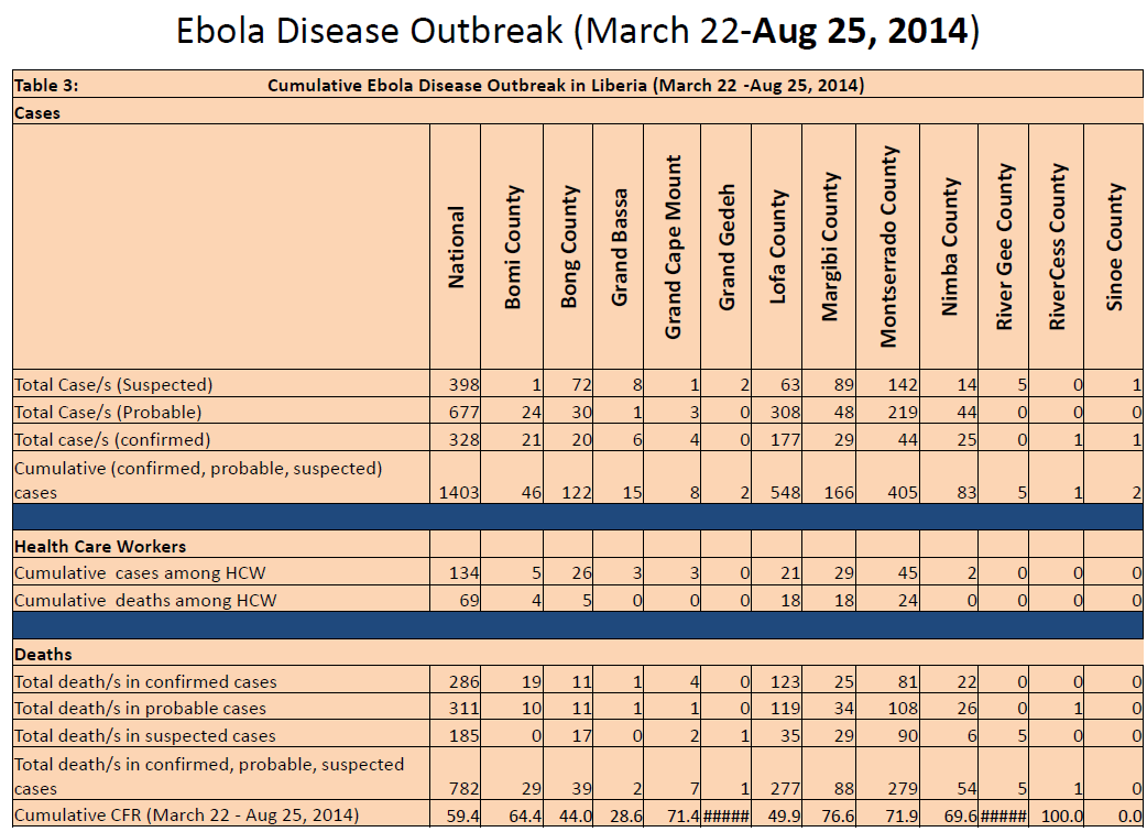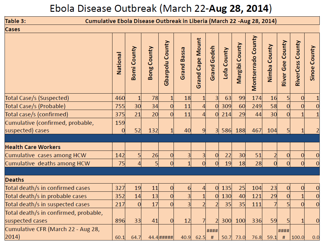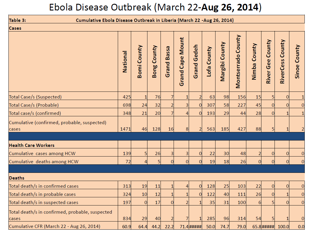 Re: Liberia - Ebola: 972 clinical cases, 576 deaths as of August 18, 2014 (WHO report August 20, 2014)
