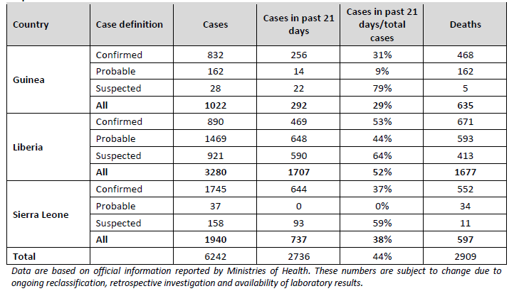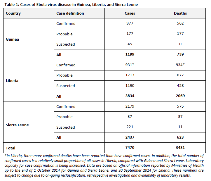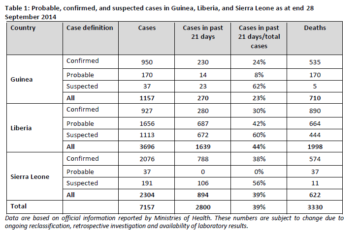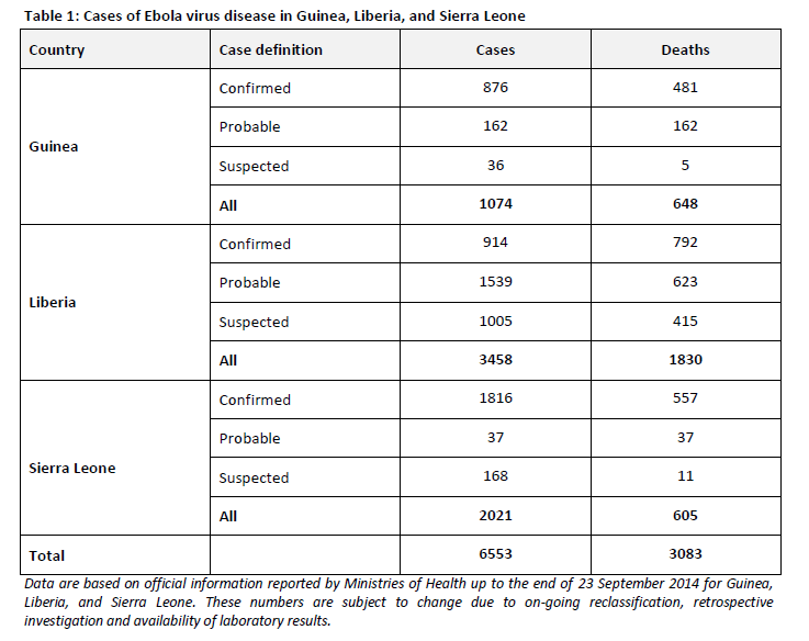 Re: Sierra Leone - Ebola outbreak: 1,813 clinical cases including 593 deaths as of September 19, 2014 (WHO Ebola Response Roadmap September 22, 2014)