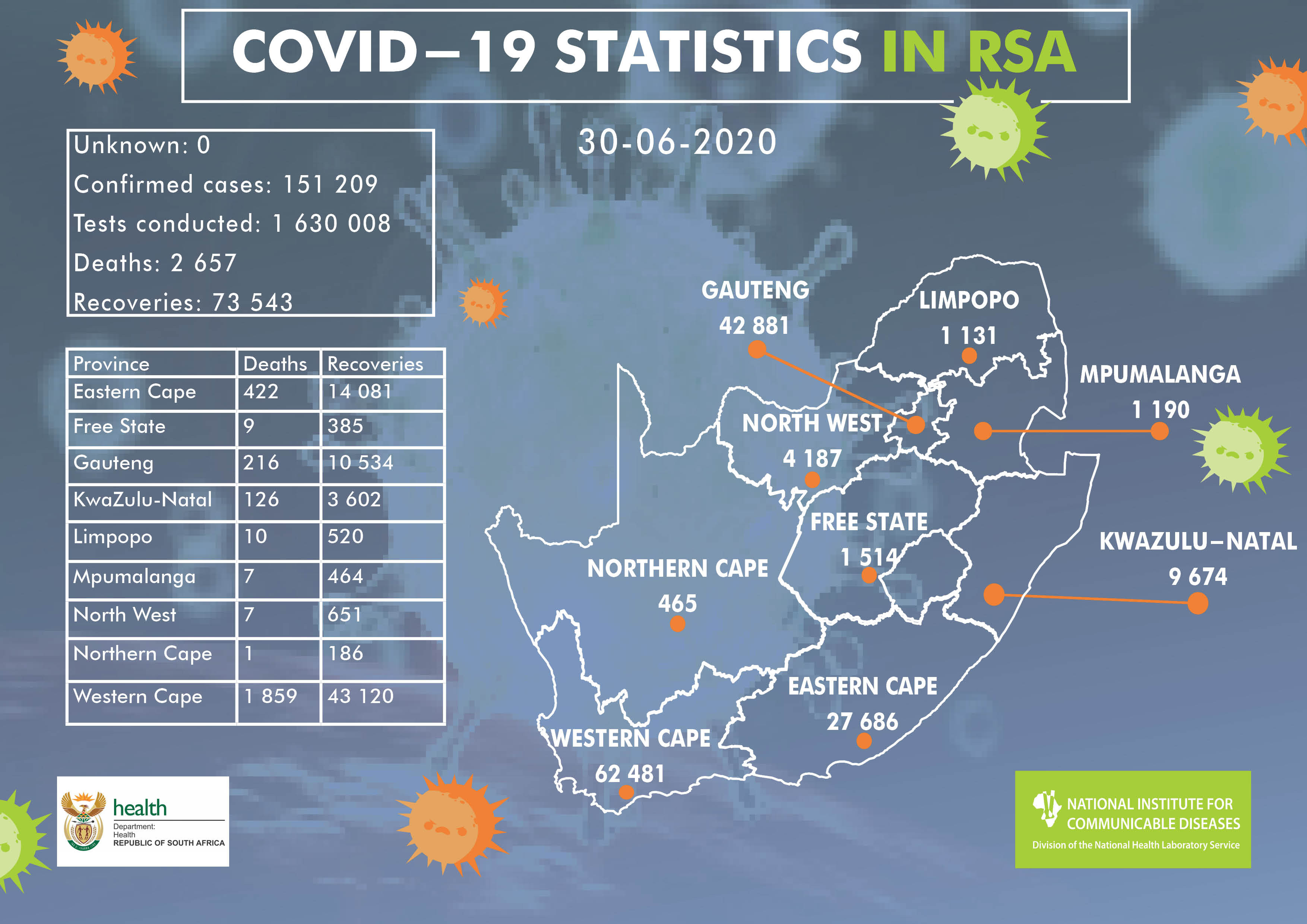 As of Thursday, 2 July 2020, the cumulative number of confirmed Covid-19 cases in South Africa is 168 061.