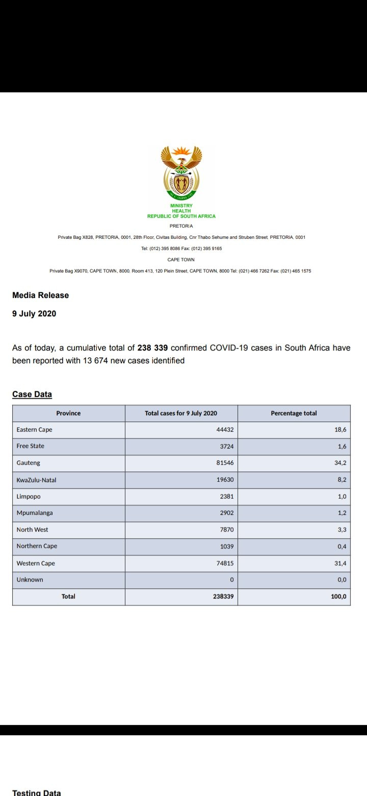 South Africa: Covid-19 cases - 646,398 cases; 15,378 deaths