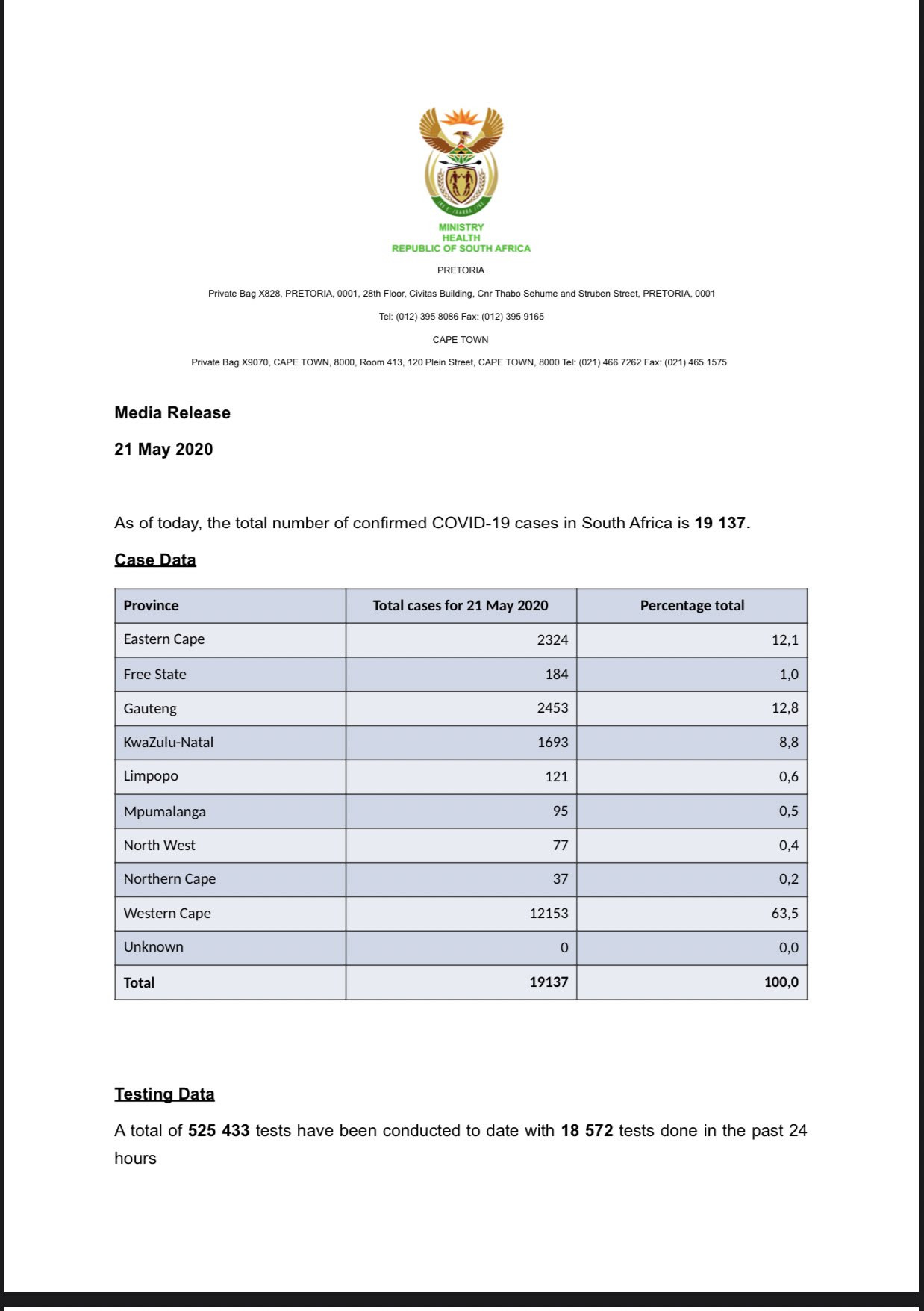 South Africa: Covid-19 cases - 646,398 cases; 15,378 deaths