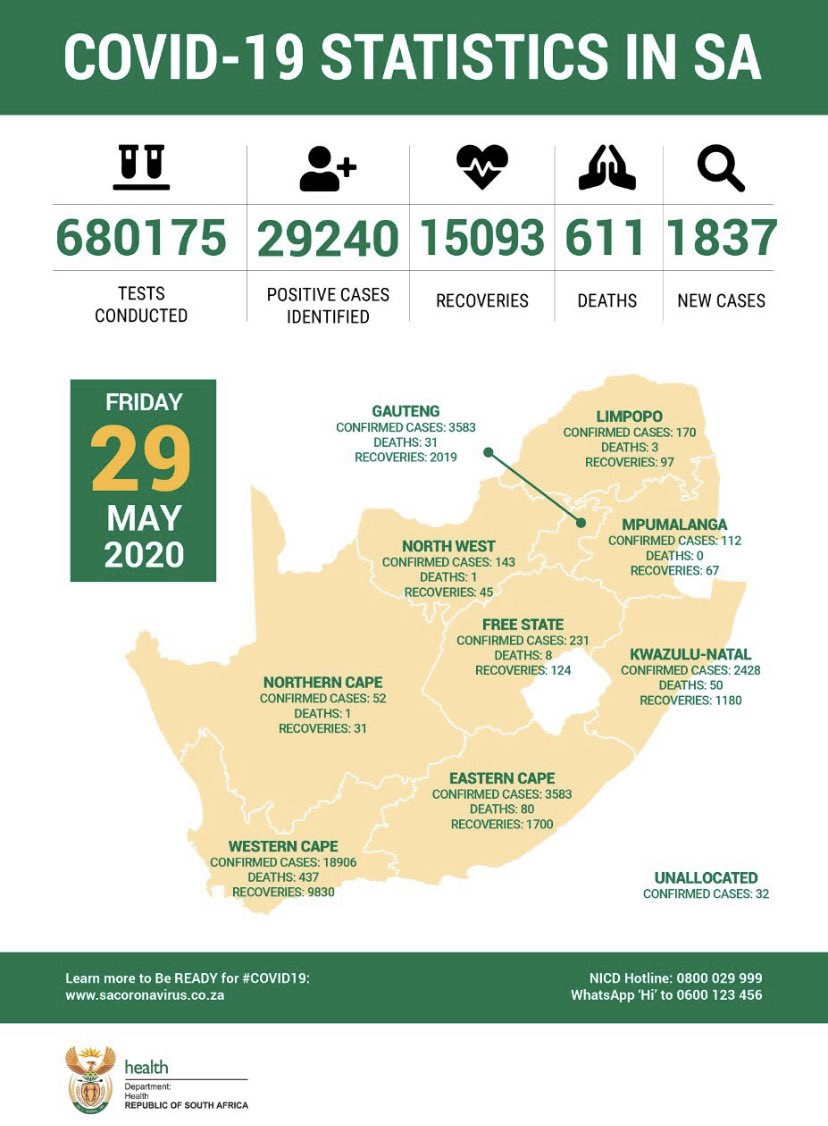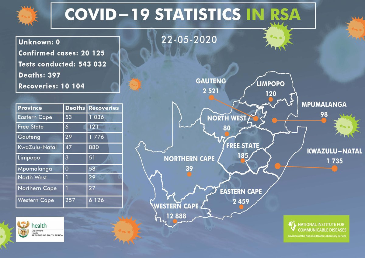 South Africa downgrades lockdown rules, sending 8 million back to work. 23,615 cases and 481 deaths: https://www.cnbc.com/2020/05/26/sout...k-to-work.html