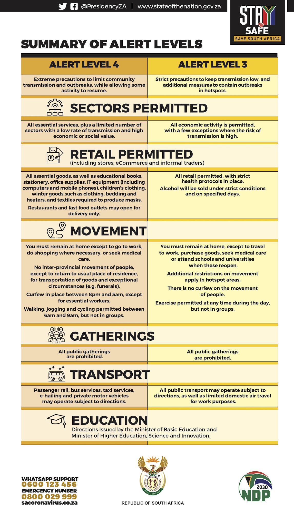 President Cyril Ramaphosa announced tonight that the country is moving to Level 3 from June 1. Some major cities will be treated as “hotspots” and will require greater interventions. He described a “hotspot” as being an area that has more than 5 infected people per 100 000 population.