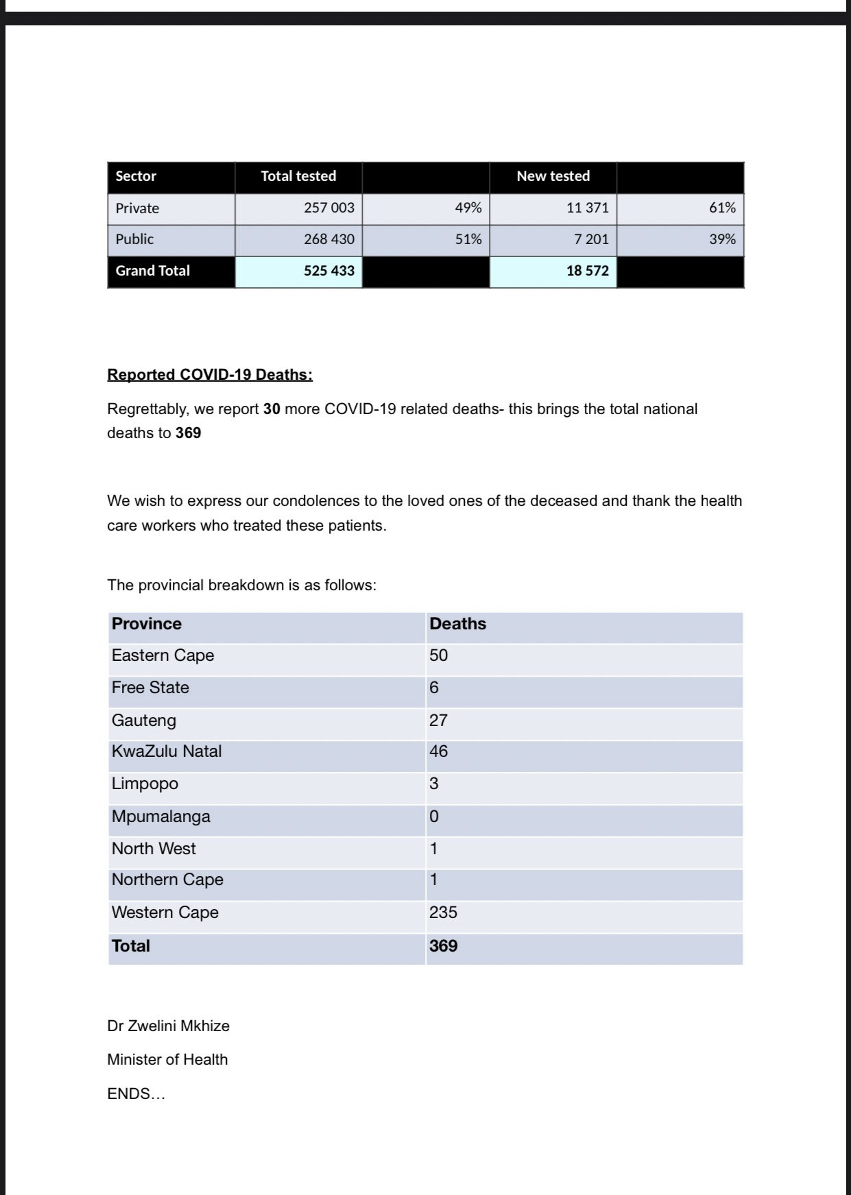 The Covid-19 death toll hit 577 on Thursday - an increase of 25, Health Minister Zweli Mkhize said.
