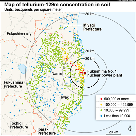 Gov't releases map of radioactive tellurium-129m contamination around nuke plant
