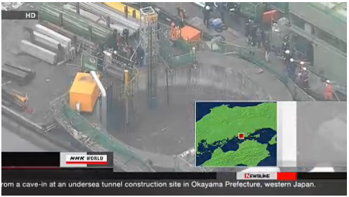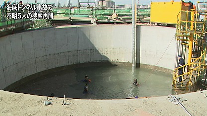 Five workers are missing from a cave-in at an undersea tunnel construction site in western Japan.