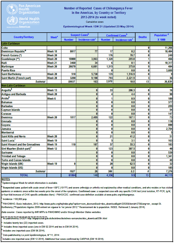 Re: Chikungunya in the Americas PAHO Reports 2014