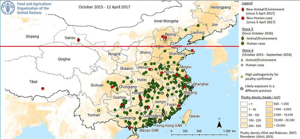 Credit FAO - North South Dividing Line Added #13,297 Up until a few weeks ago Beijing had been largely exempt from H7N9 - repo...