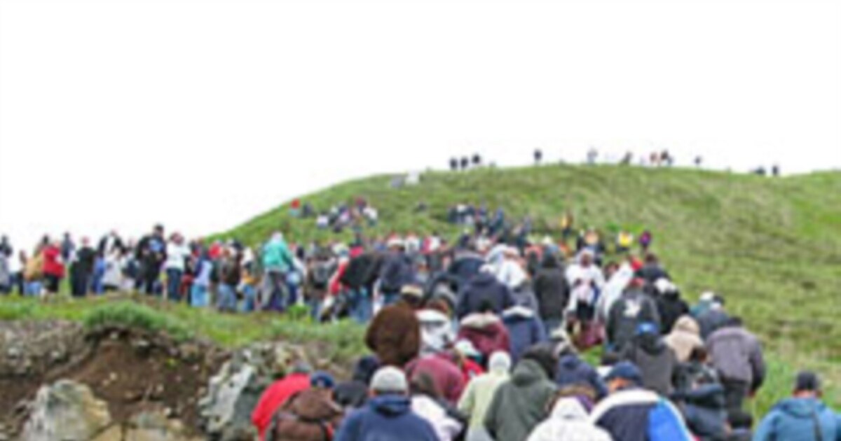 Fish processing workers and local residents head up the hill after a tsunami warning was issued in Unalaska's Dutch Harbor, in Alaska's Aleutian Islands, June 23, 2011
