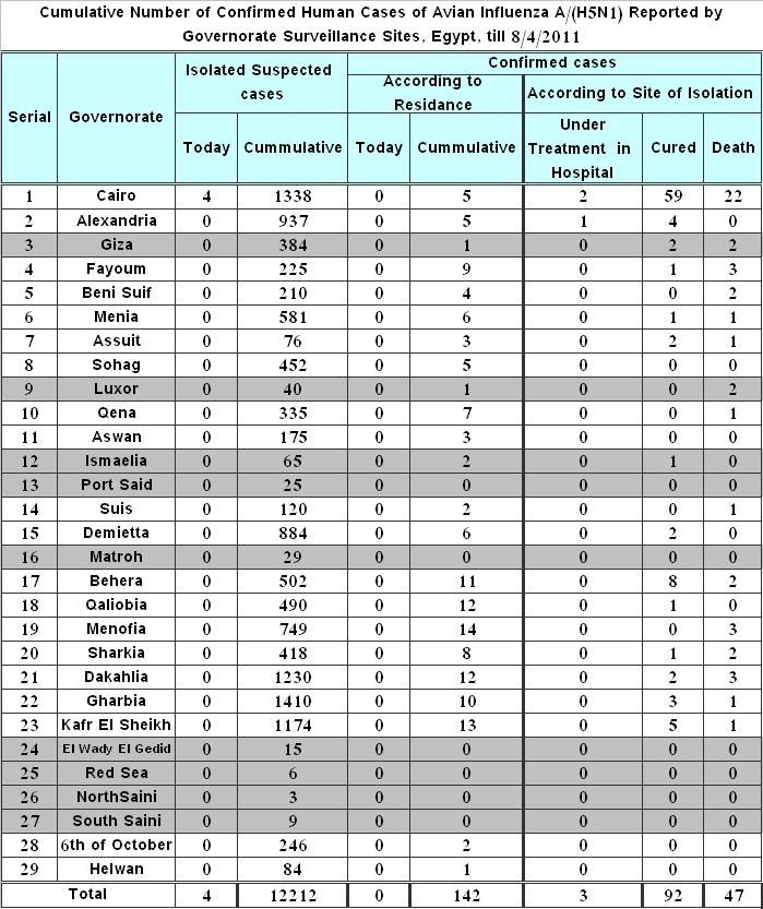 Source: Egyptian Ministry of Health, original page: http://www.mohp.gov.eg/swine_flu/AI2.aspx