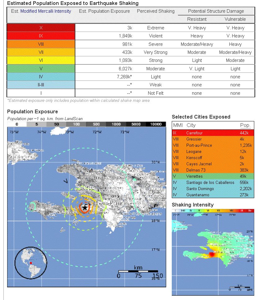 Given that the well built Presidential Palace has reportedly collapsed and that the USGS estimates that 2 million people are in an area where even earthquake resistant buildings would suffer moderate/heavy damage, I fear horrendous casualties. The quake was just too close to the surface