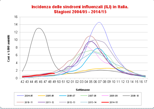Il fatto è che ogni inverno, in misura più o meno marcata, si registra un aumento consistente della mortalità, che coincide solitamente con i mesi più freddi dell' anno ea carico soprattutto delle persone fragili. Ma, guarda caso, il picco di mortalità accompagna sempre o segue di poco quello delle ILI e quest' ultimo coincide con la massima circolazione del virus influenzale, che raggiunge il 40-50% degli isolamenti al suo apice . Nell' anno della pandemia il virus H1N1, al pari di un' onda anomala, ha colpito il nostro paese in netto anticipo rispetto al periodo in cui classicamente si manifestano i virus stagionali.