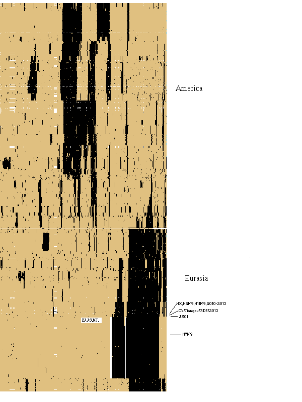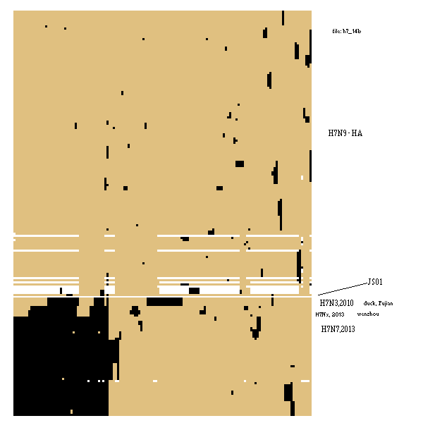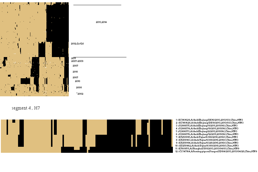 segment 4, HA: 0 0 1683 49 >A/Index/H7N9-China/2013/03/,H7N9 -------------------------------------------------------- 53 9 1683 11 >KF609511,A/Shanghai/JS01/2013,2013/04/03,China,H7N9,Human 219 37 1683 140 >KF259041,A/pigeon/Wenzhou/559/2013,2013//,China,H7N7,Avian 231 39 1683 7 >KF258995,A/duck/Fujian/6390/2010,2010//,China,H7N3,Avian 231 39 1683 8 >KF258963,A/duck/Fujian/6388/2010,2010//,China,H7N3,Avian 231 39 1683 10 >KF258962,A/duck/Fujian/6380/2010,2010//,China,H7N3,Avian 231 39 1683 141 >KF259040,A/duck/Wenzhou/47/2013,2013//,China,H7N7,Avian 237 40 1683 9 >KF258994,A/duck/Fujian/6326/2010,2010//,China,H7N3,Avian 237 40 1683 142 >KF259039,A/duck/Wenzhou/775/2013,2013//,China,H7N2,Avian 237 40 1683 143 >KF259009,A/duck/Wenzhou/771/2013,2013//,China,H7N3,Avian 243 41 1683 144 >KF258958,A/goose/Guangdong/7472/2012,2012//,China,H7N7,Avian 272 42 1541 181 >KF297292,A/silkie chicken/Wenzhou/804b/2013,2013//,China,H7N7,Avian 409 69 1683 3 >JQ906575,A/duck/Zhejiang/11/2011,2011/06/,China,H7N3,Avian 463 78 1683 309 >KF259000,A/wild duck/Jiangxi/10179/2005,2005//,China,H7N3,Avian 482 81 1680 294 >FJ750875,A/wild bird feces/Korea/HDR22/2006,2006//,South Korea,H7N7,Avian 484 80 1650 324 >EU158102,A/duck/Jiangxi/1786/03,2003//,China,H7N7,Avian 510 86 1683 314 >AB473543,A/duck/Mongolia/867/2002,2002//,Mongolia,H7N1,Avian 558 94 1683 328 >AB269695,A/duck/Taiwan/4201/99,1999//,Taiwan,H7N7,Avian
