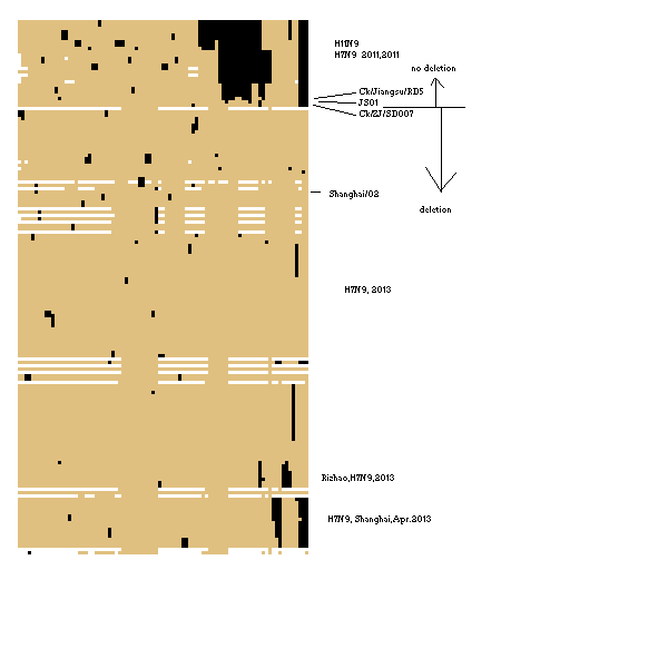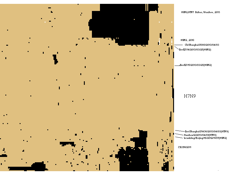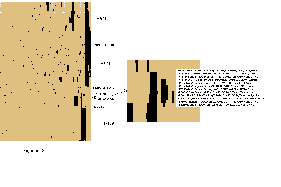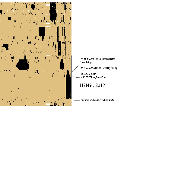 segment 6, NA 0 0 1398 162 >A/Index/H7N9-China/2013/03/,H7N9 --------------------------------------------------------- 50 7 1398 26 >KF609513,A/Shanghai/JS01/2013,2013/04/03,China,H7N9,Human 78 11 1398 61 >KF226107,A/Jiangsu/2/2013,2013/04/20,China,H7N9,Human 100 14 1398 24 >KF259728,A/northern shoveler/Hong Kong/MPL133/2010,2010//,Hong Kong,H2N9,Avian 121 17 1398 25 >KF006416,A/chicken/Jiangsu/RD5/2013,2013/03/,China,H10N9,Avian 128 18 1398 21 >KF259698,A/duck/Jiangxi/21714/2011,2011//,China,H11N9,Avian 128 18 1398 23 >KF259726,A/northern shoveler/Hong Kong/MPL961/2011,2011//,Hong Kong,H2N9,Avian 135 19 1398 11 >KC609801,A/wild duck/Korea/SH19-47/2010,2010/12/,South Korea,H7N9,Avian 135 19 1398 20 >KC609799,A/wild duck/Korea/SH19-27/2010,2010/12/,South Korea,H7N9,Avian 141 19 1340 15 >KC609803,A/wild duck/Korea/MHC35-41/2011,2011/03/,South Korea,H7N9,Avian 142 19 1330 13 >KC609800,A/wild duck/Korea/SH19-44/2010,2010/12/,South Korea,H7N9,Avian 142 19 1333 12 >KC609798,A/wild duck/Korea/SH19-50/2010,2010/01/,South Korea,H7N9,Avian