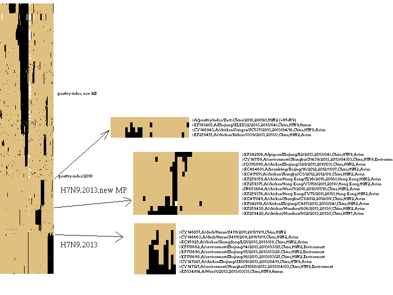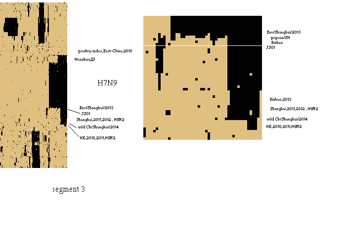 segment 4 0 0 1413 24 >KF259728,A/northern shoveler/Hong Kong/MPL133/2010,2010//,Hong Kong,H2N9,Avian ---------------------------------------- 28 4 1413 21 >KF259698,A/duck/Jiangxi/21714/2011,2011//,China,H11N9,Avian 28 4 1413 23 >KF259726,A/northern shoveler/Hong Kong/MPL961/2011,2011//,Hong Kong,H2N9,Avian 35 5 1413 11 >KC609801,A/wild duck/Korea/SH19-47/2010,2010/12/,South Korea,H7N9,Avian 35 5 1413 20 >KC609799,A/wild duck/Korea/SH19-27/2010,2010/12/,South Korea,H7N9,Avian 36 5 1355 15 >KC609803,A/wild duck/Korea/MHC35-41/2011,2011/03/,South Korea,H7N9,Avian 37 5 1345 13 >KC609800,A/wild duck/Korea/SH19-44/2010,2010/12/,South Korea,H7N9,Avian 37 5 1348 12 >KC609798,A/wild duck/Korea/SH19-50/2010,2010/01/,South Korea,H7N9,Avian 39 5 1253 14 >KC609804,A/wild duck/Korea/MHC35-25/2011,2011/03/,South Korea,H7N9,Avian 55 3 541 42 >KF028388,A/Shanghai/5058T/2013,2013/04/19,China,H7N9,Human 56 8 1413 22 >KF259703,A/wild waterfowl/Hong Kong/MPP1311/2013,2013//,Hong Kong,H2N9,Avian 61 8 1309 19 >KC609808,A/wild duck/Korea/CSM42-1/2011,2011/03/,South Korea,H7N9,Avian 63 9 1413 25 >KF006416,A/chicken/Jiangsu/RD5/2013,2013/03/,China,H10N9,Avian 63 9 1413 26 >KF609513,A/Shanghai/JS01/2013,2013/04/03,China,H7N9,Human 66 9 1354 16 >KC609806,A/wild duck/Korea/MHC39-26/2011,2011/03/,South Korea,H7N9,Avian 72 10 1383 17 >KC609805,A/wild duck/Korea/MHC39-13/2011,2011/03/,South Korea,H7N9,Avian 84 12 1413 2 >CY146614,A/duck/Hunan/S1607/2012,2012/03/24,China,H11N9,Avian 84 12 1413 6 >CY146638,A/duck/Hunan/S4013/2011,2011/11/09,China,H11N9,Avian 84 12 1413 7 >CY146686,A/duck/Hunan/S4137/2011,2011/11/11,China,H11N9,Avian 84 12 1413 10 >KF259695,A/duck/Guizhou/1078/2011,2011//,China,H11N9,Avian 92 13 1398 27 >CY147014,A/chicken/Shanghai/S1358/2013,2013/04/03,China,H7N9,Avian 92 13 1398 43 >CY147038,A/chicken/Zhejiang/SD007/2013,2013/04/22,China,H7N9,Avian 92 13 1398 108 >KC896765,A/environment/Nanjing/2913/2013,2013/03/29,China,H7N9,Environment 92 13 1413 3 >CY146734,A/environment/Hunan/S11511/2012,2012/03/24,China,H4N9,Environment 93 13 1392 18 >KC609809,A/wild duck/Korea/CSM42-34/2011,2011/03/,South Korea,H7N9,Avian 100 14 1398 162 >A/Index/H7N9-China/2013/03/,H7N9