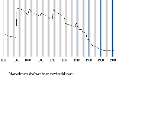 Code:diarrhae 1851: 84 , 1861:190 , 1871:189 , 1881:333 , 1891:408 , 1901:2705 dysentery 1851:123 , 1861:348 , 1871:227 , 1881:159 , 1891: 76 , 1901:- cholera infantum 1851:383 , 1861:1266, 1871:1718, 1881:1861, 1891:2771, 1901:-