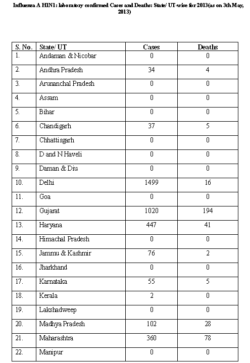 Re: India Influenza 2013; 361 fatalities