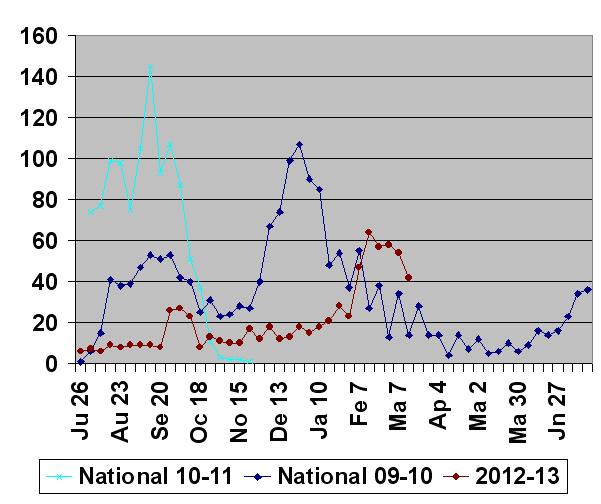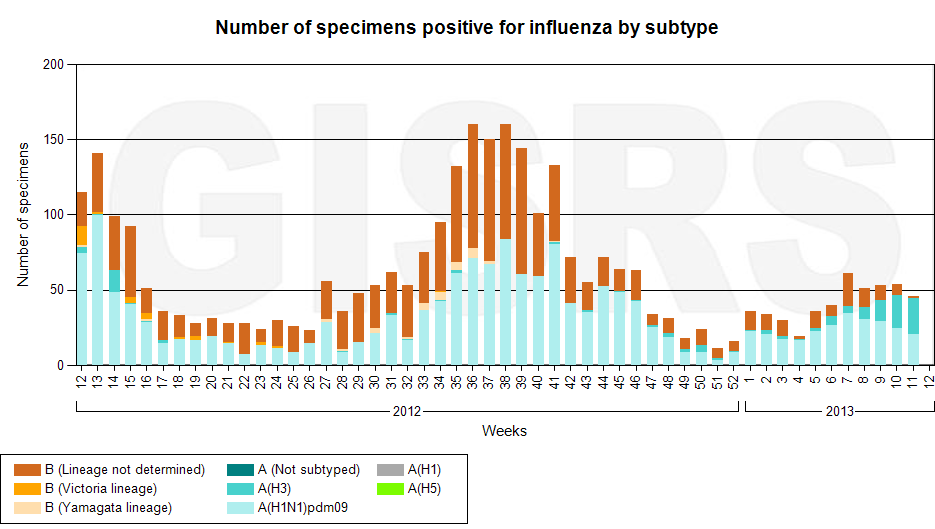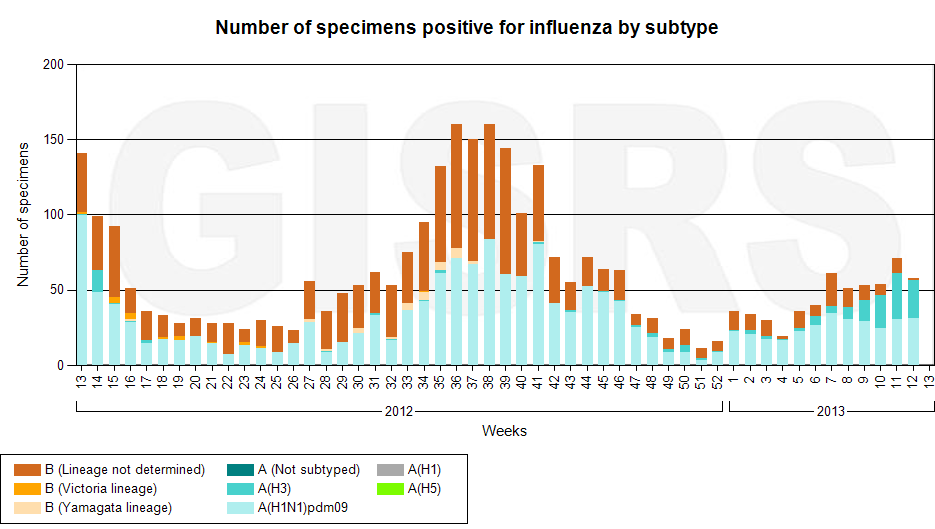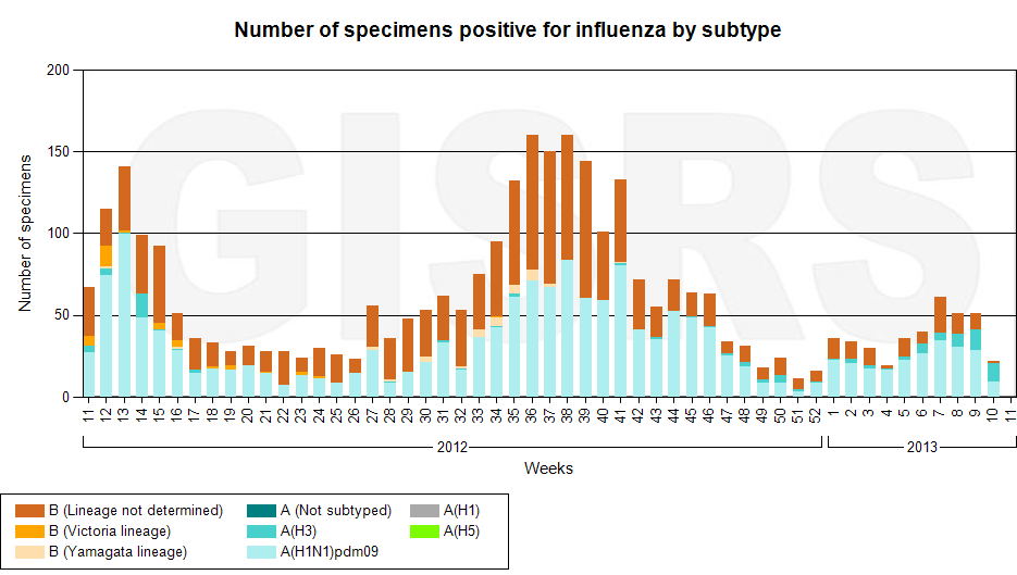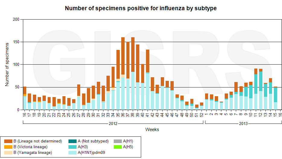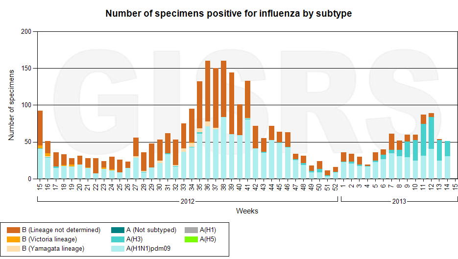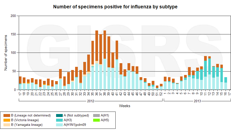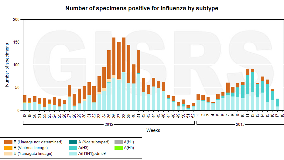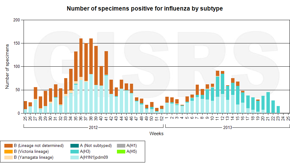Latest GISRS graph; http://gamapserver.who.int/gareports...spx?ReportNo=1 There can be a delay of several weeks in this data.