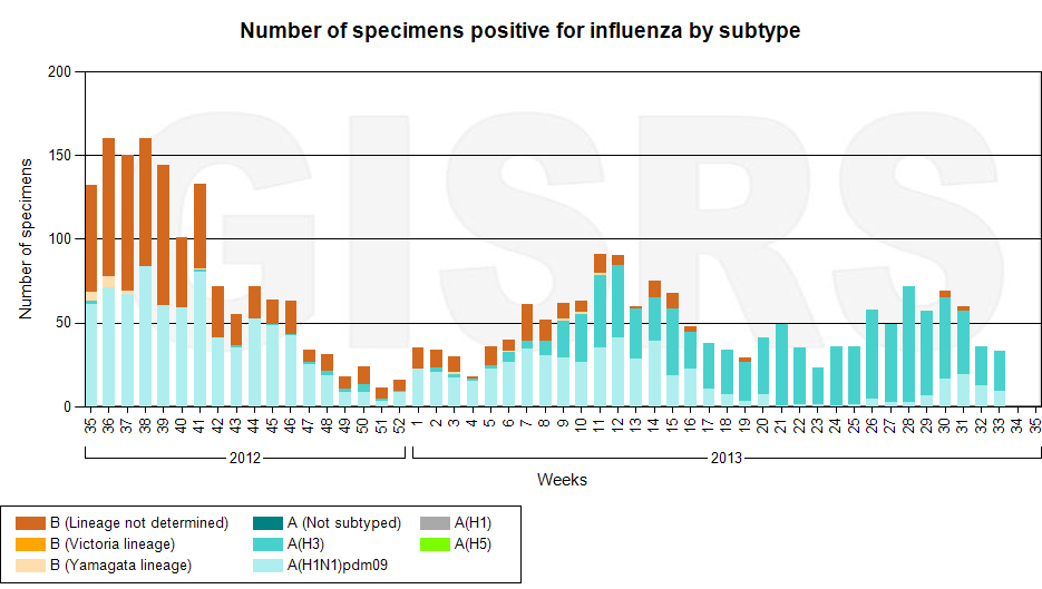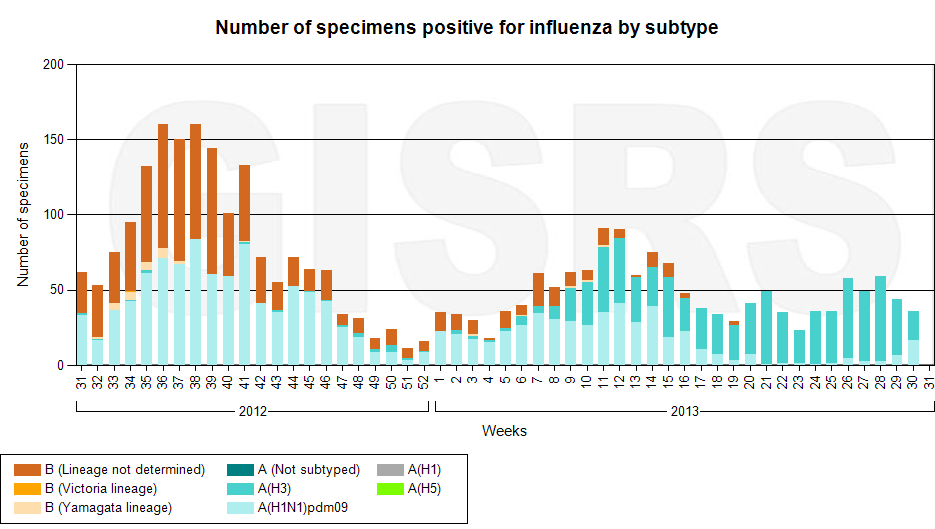 Latest GISRS graph; http://gamapserver.who.int/gareports...spx?ReportNo=1 There can be a delay of several weeks in this data.