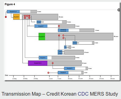 This unprecedented nosocomial outbreak spread across 16 hospitals in South Korea, where more than 185 patients, family members and staff were infected (see June 2015 WHO MERS Situation Assessment For Korea), with at least 37 deaths.