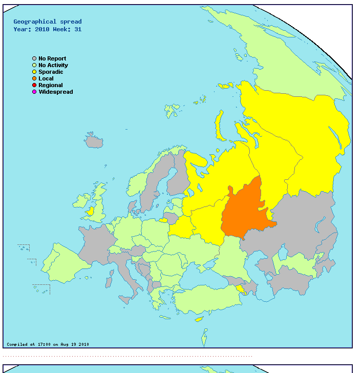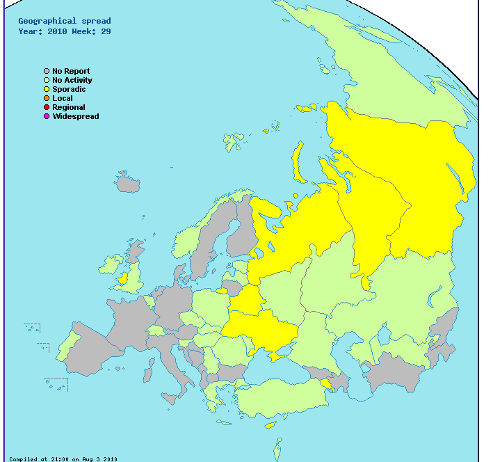 -- Most of the Russian Federation regions report sporadic activity, with the exception of far east, reporting local activity;
