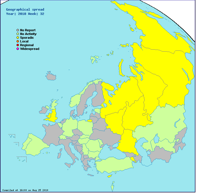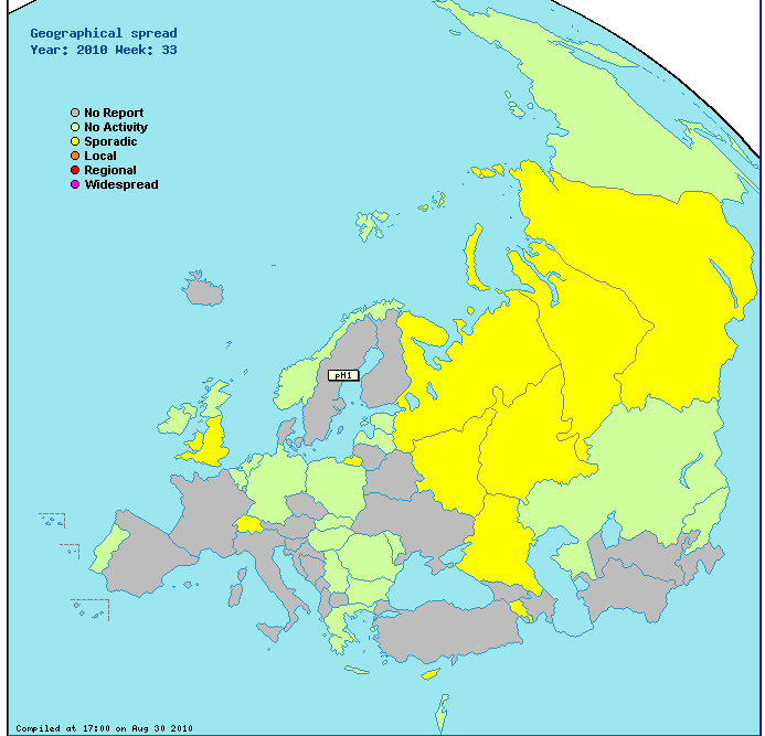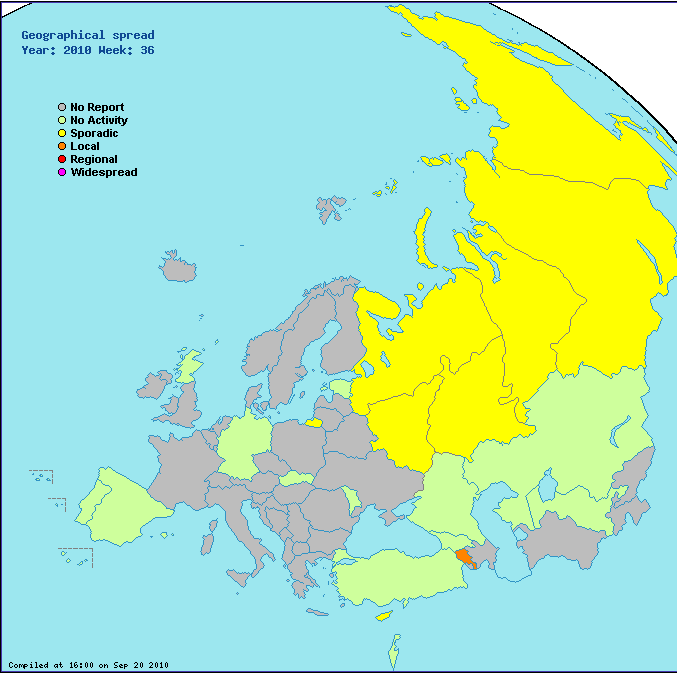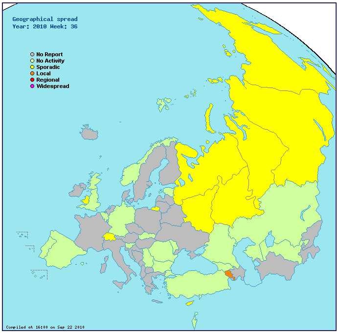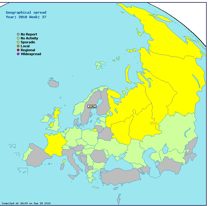 EuroFlu.org Influenza-like Illness Geographical Spread Snapshot, September 28 2010