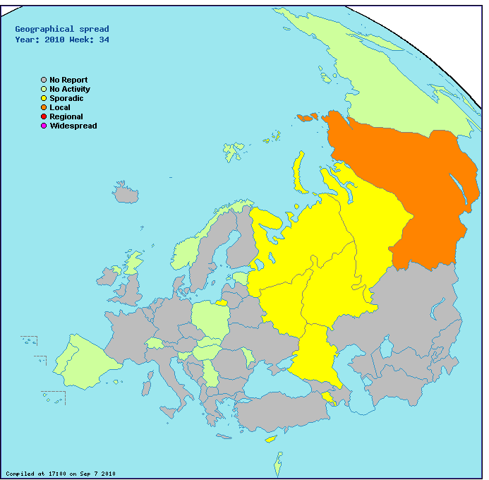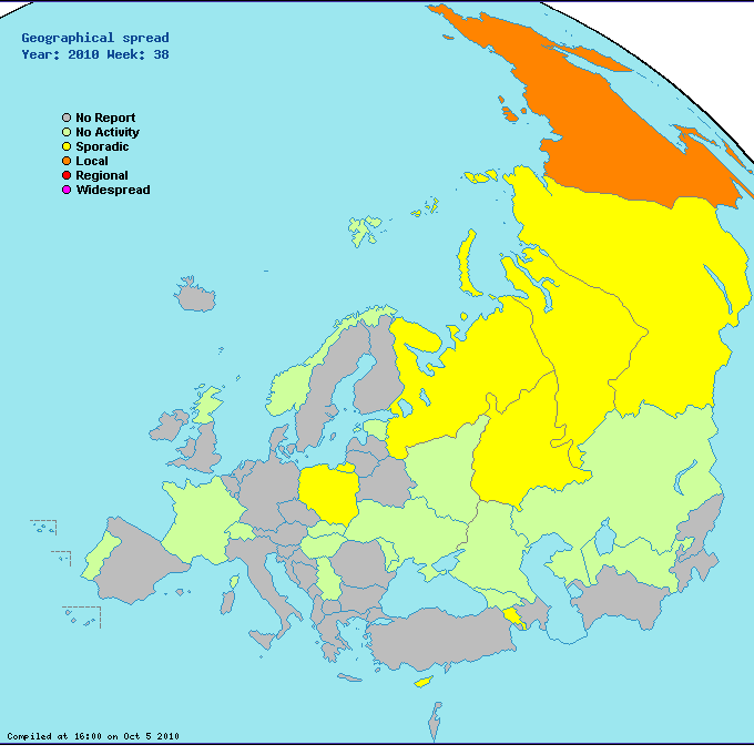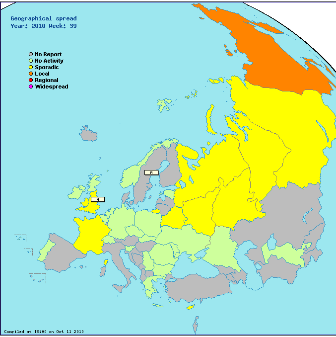 EuroFlu.org, Influenza-like Illness Geographical Spread Snapshot, October 7 2010.