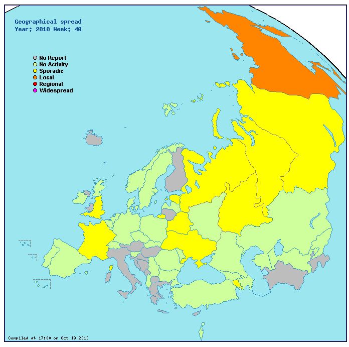 EuroFlu, Influenza-like Illness Geographical Spread Snapshot, October 19 2010
