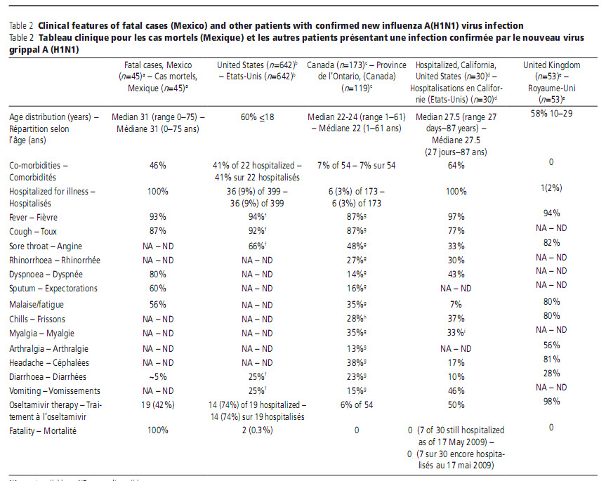 Table 2 Clinical features of fatal cases (Mexico) and other patients with confirmed new influenza A(H1N1) virus infection