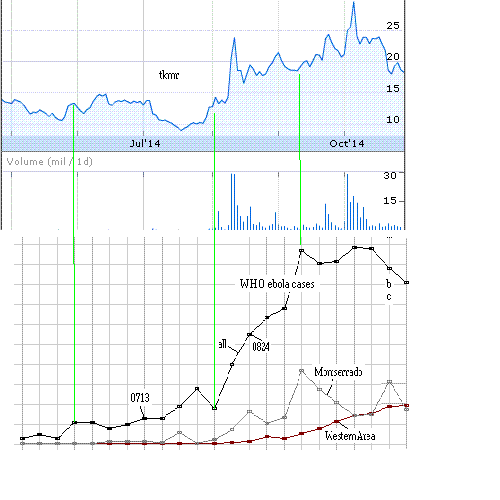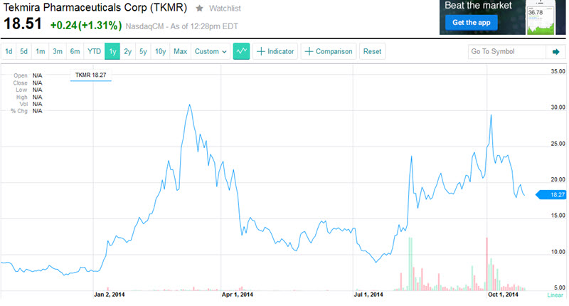 Tekmira Pharmaceuticals (TKMR) up 10-->23 since July biggest jump on Aug.08