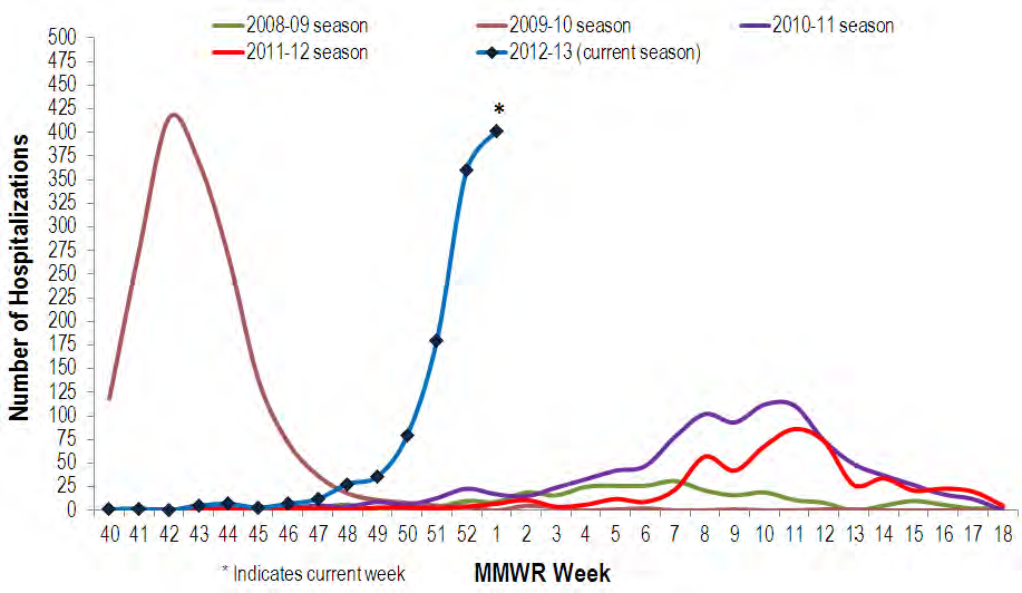 I thought I'd start posting some of the hospitalization data from the U.S., especially the data indicating laboratory confirmed influenza, as this is a more accurate indicator of influenza infections than the more generic ILI charts. The increases over the past several weeks appear logarithmic and have not yet peaked.