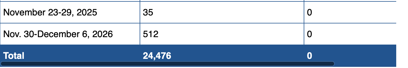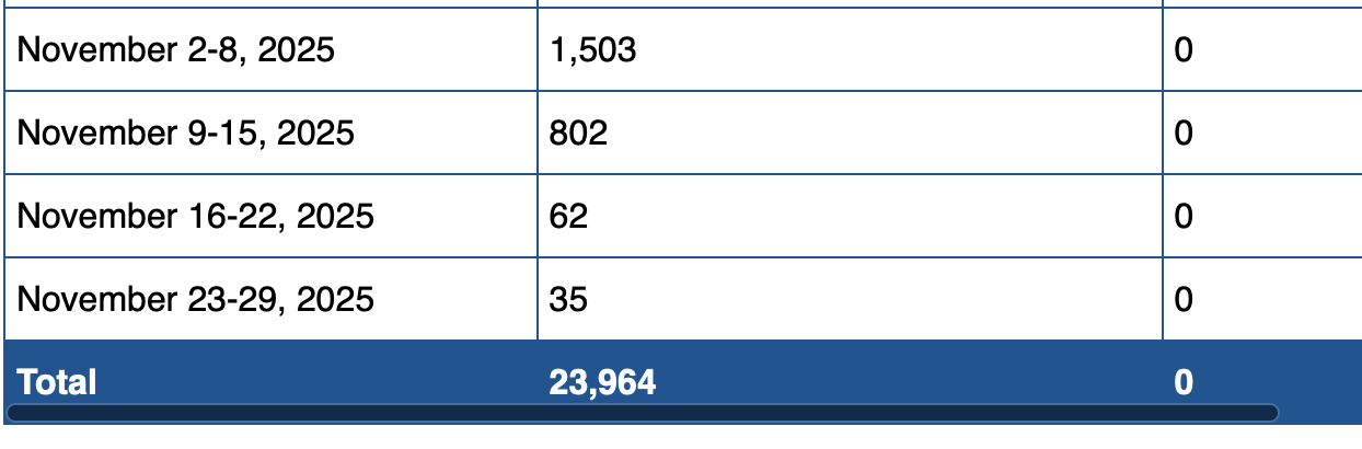 | October 12-18, 2025 | 1,184 | 0 |