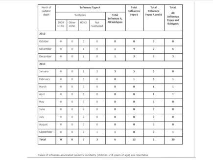 Note: 1 Pediatric death with un-subtyped influenza virus reported in September