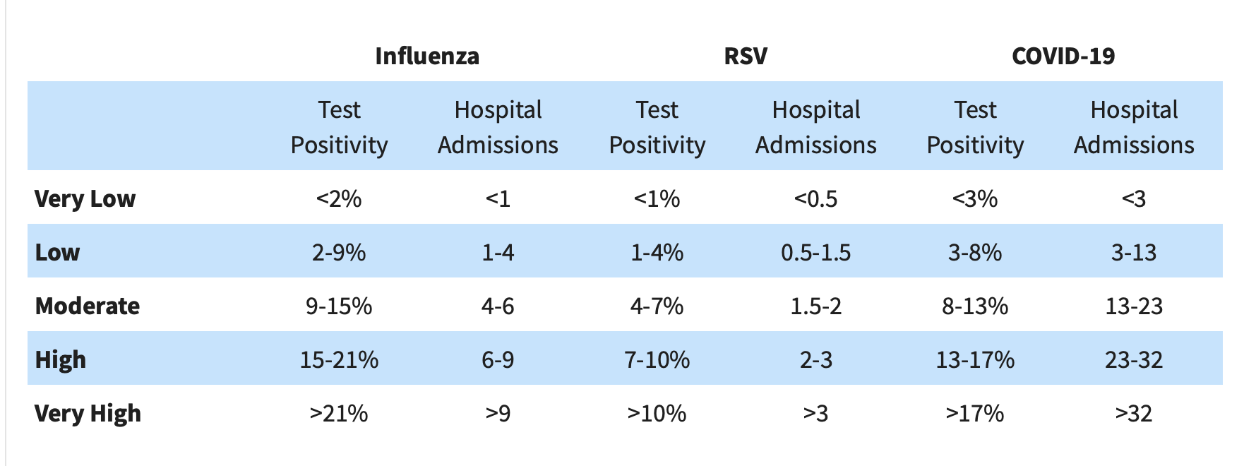 - Hospitalization rates for flu, RSV and COVID-19