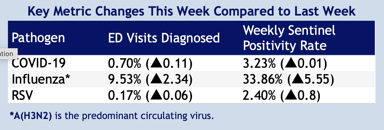 The ominous trend is reminiscent of the worst surges of the pandemic, with a variety of metrics on the state’s viral respiratory diseases dashboard all blinking red. This time, however, it’s not COVID-19, but flu, which is also now circulating widely in the U.S