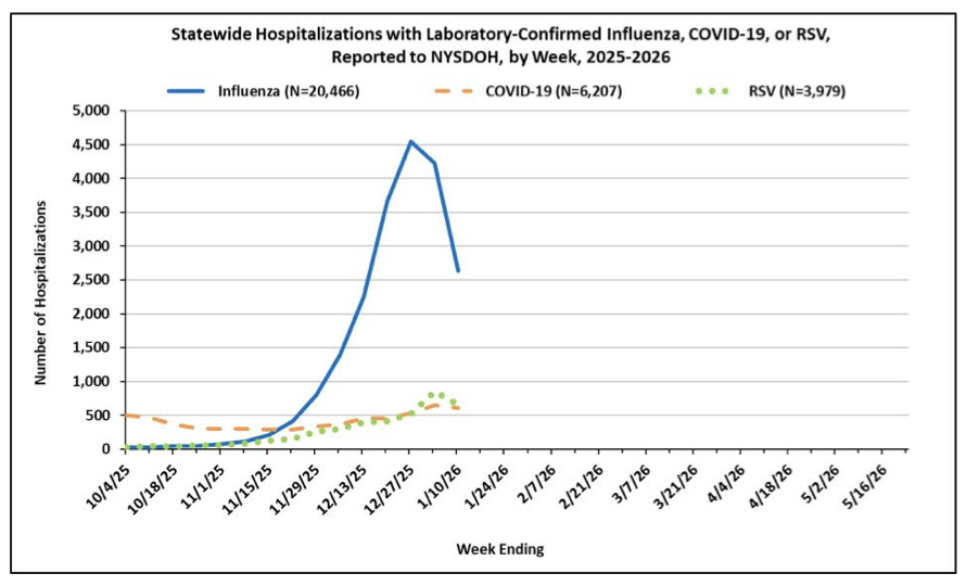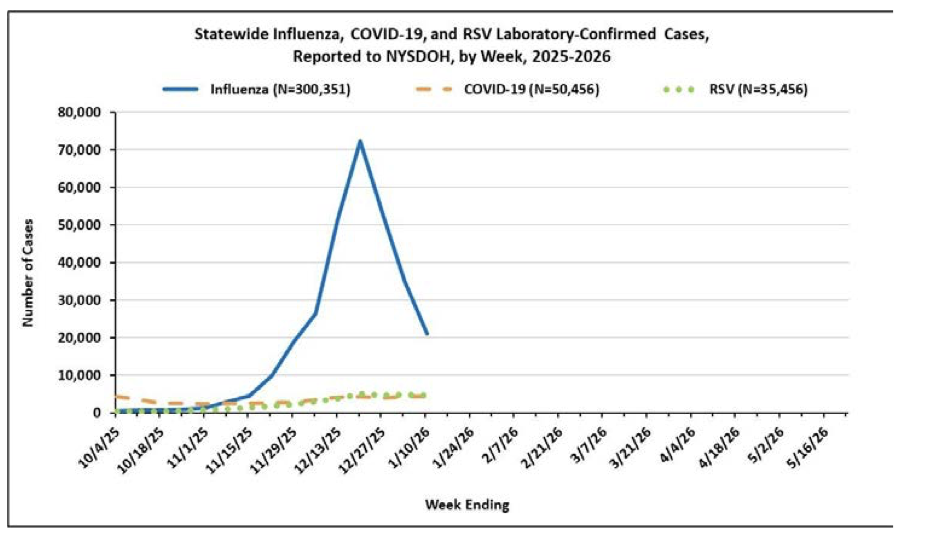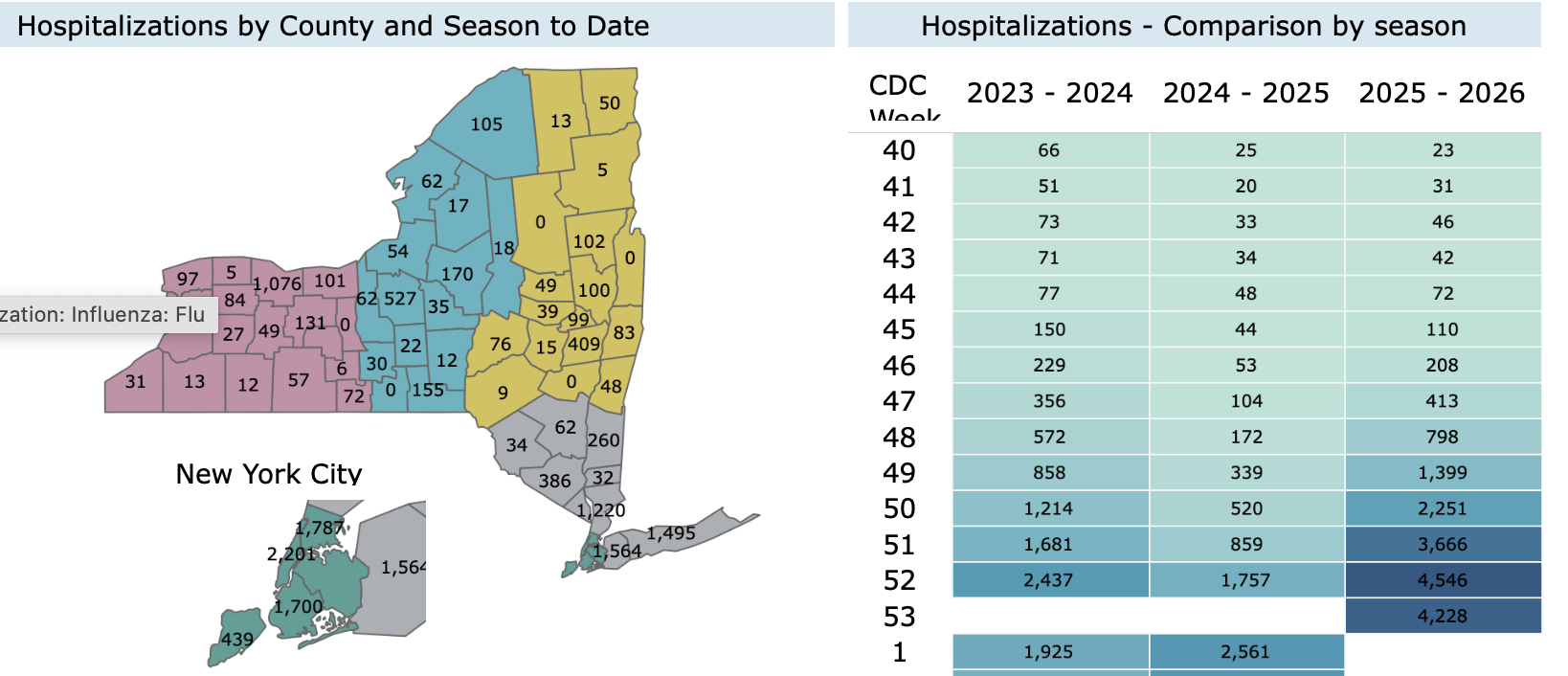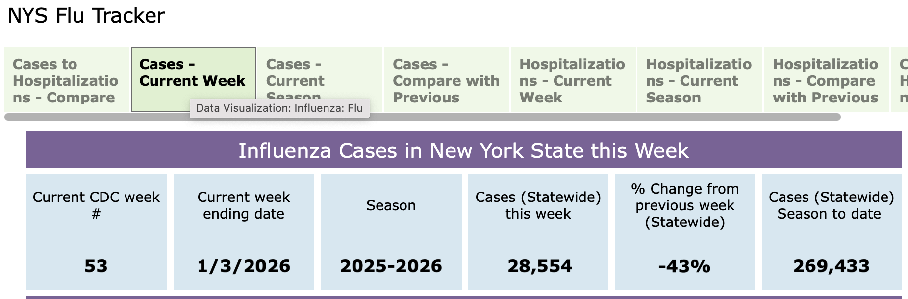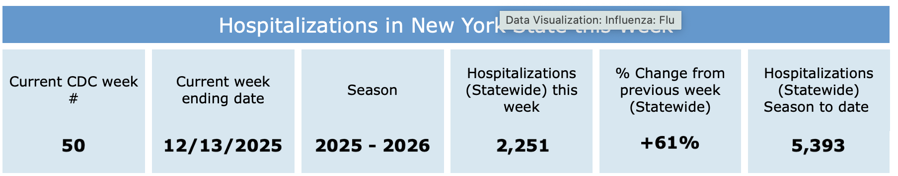 The restrictions come amid a spike in flu cases across New York. As of Dec. 6, there have been 24,287 lab confirmed cases of flu in New York State this season resulting in 1,399 hospitalizations for the virus, according to the Department of Health. Saratoga County alone has seen 134 lab confirmed cases, a rate of 55.75 cases per 100,000 residents. These cases have resulted in 5 hospitalizations.
